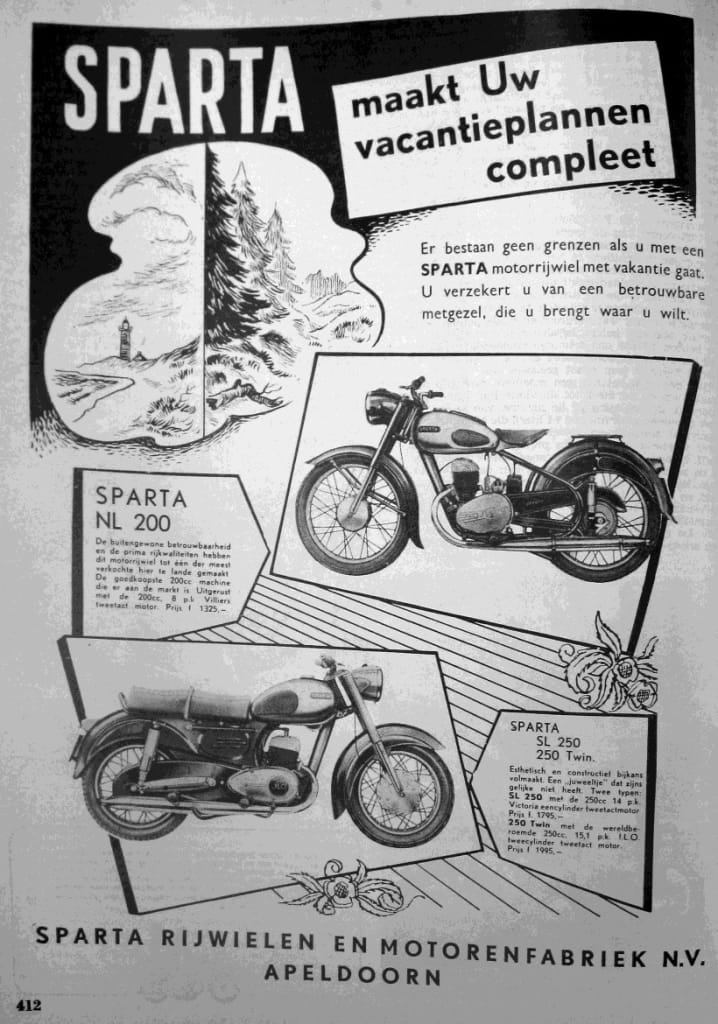 Na WOII maakte Sparta gebruikt Victoria en Villiers motoren in hun motorfietsen en een zeer goede 98cc Villiers aangedreven motor werd in een scooter gebouwd tussen 1953 en 1957. Bromfietsen waren een belangrijk product voor Sparta en ze stonden bekend om hun goede kwaliteit.